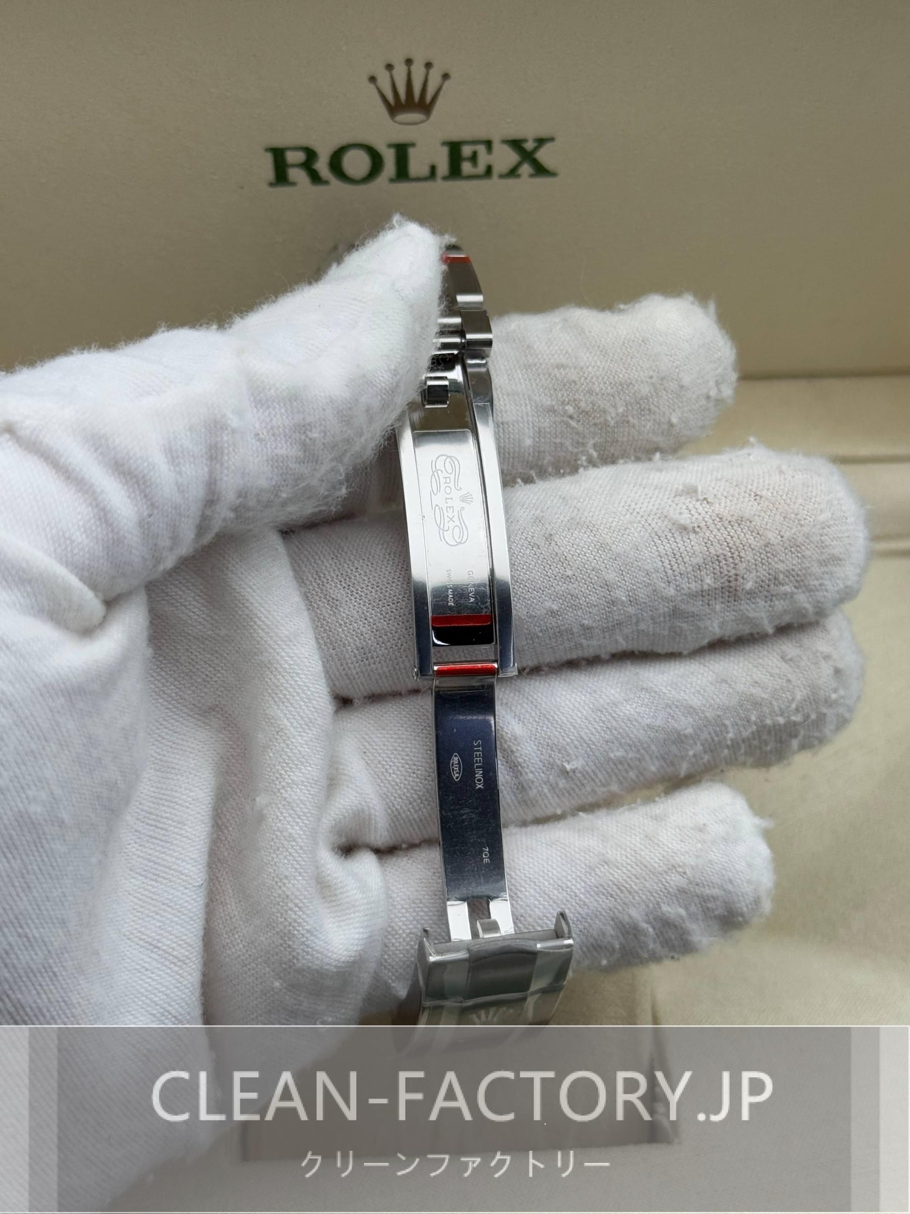ベルト:クリーンファクトリーは平たい3ピースリンクを象徴とするオイスターデザインベルトを採用しています。904Lグレードのステンレスチールで作り出されており、スクラッチプロティングコーティング加工も施されています。ベルトにはソリッドなネジがあるため、ドライバーを利用したら、簡単にベルト調整できます。ベルトは正規品のように、5ミリコンフォートエクステンションリンク(イージリンクとも言う)を含む折畳式オイスタースクラップを備えています。