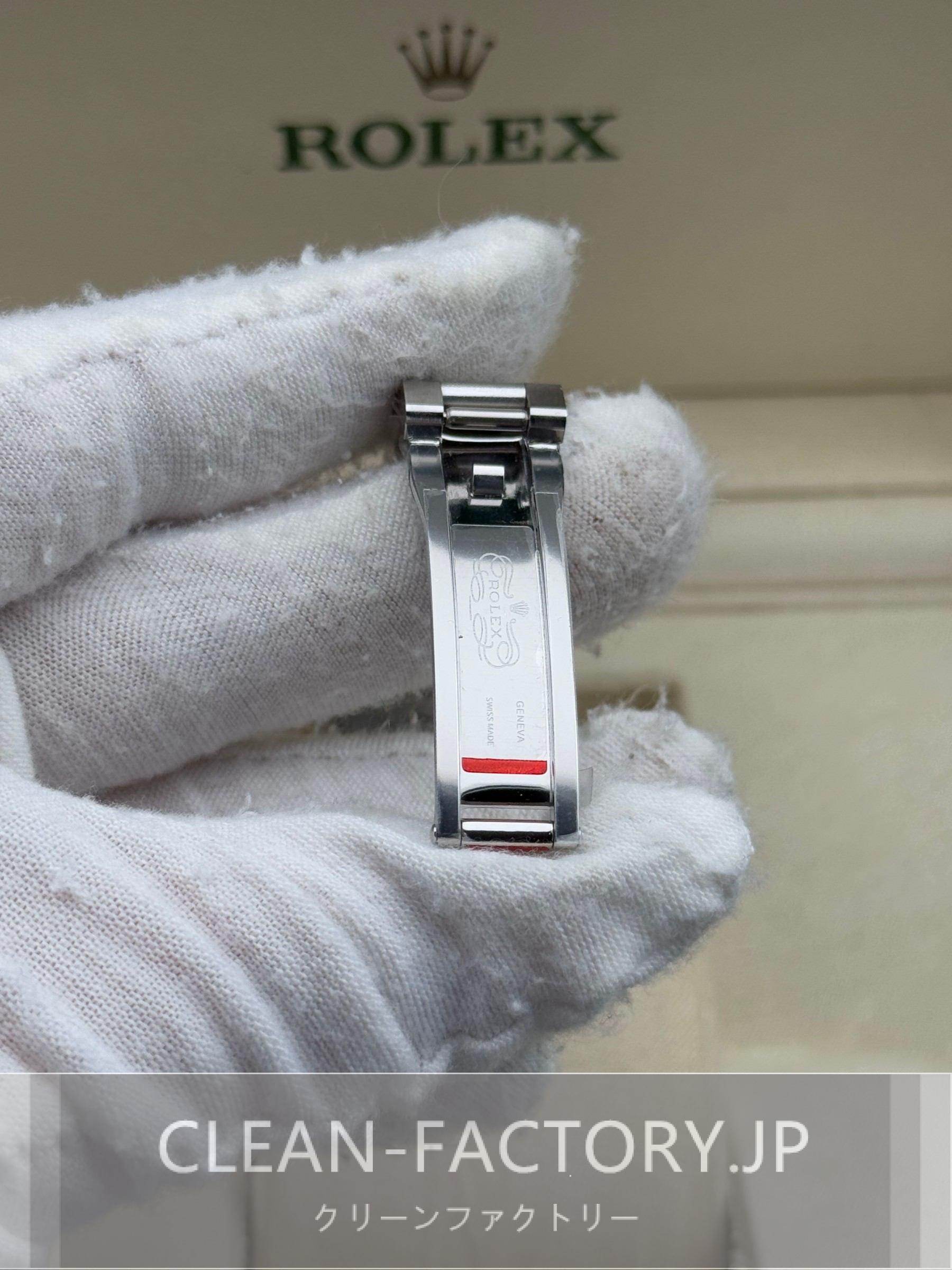ケース:31ミリオイスターケースを備えており、この時計はモノブロック構造の904Lステンレススチールによって作り出されています。この904Lグレードのスチールは、ロレックスの「オイスタースチール」ステンレススチールウォッチに採用されているものと同じもので、錆びにくいことで知られています。この時計はねじ込み式ケースバックと巻上げニューズを備えたため、時計の防水性を確保しています。RehautリンクにはROLEX ROLEX刻印を刻まれており、正しいアライメントを保証しています。寸法と重さも正規品と一致しており、正規品と1:1でマッチングすることを実現しています。