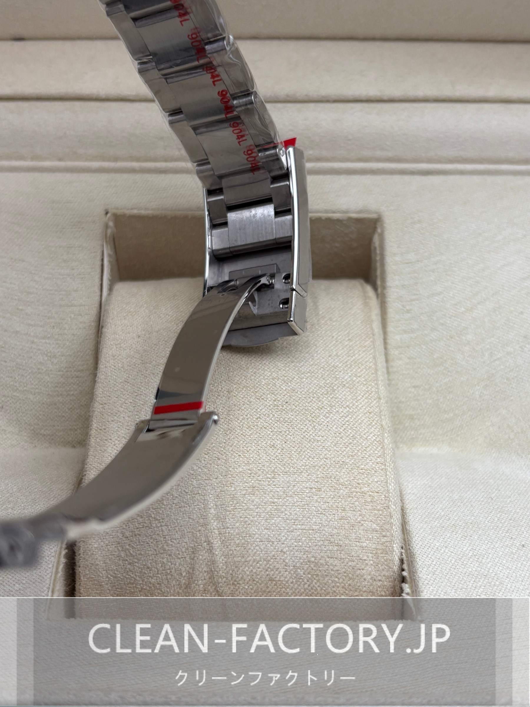 ベルト:クリーンファクトリーは平たい3ピースリンクを象徴とするオイスターデザインベルトを採用しています。904Lグレードのステンレスチールで作り出されており、スクラッチプロティングコーティング加工も施されています。ベルトにはソリッドなネジがあるため、ドライバーを利用したら、簡単にベルト調整できます。ベルトは正規品のように、5ミリコンフォートエクステンションリンク(イージリンクとも言う)を含む折畳式オイスタースクラップを備えています。