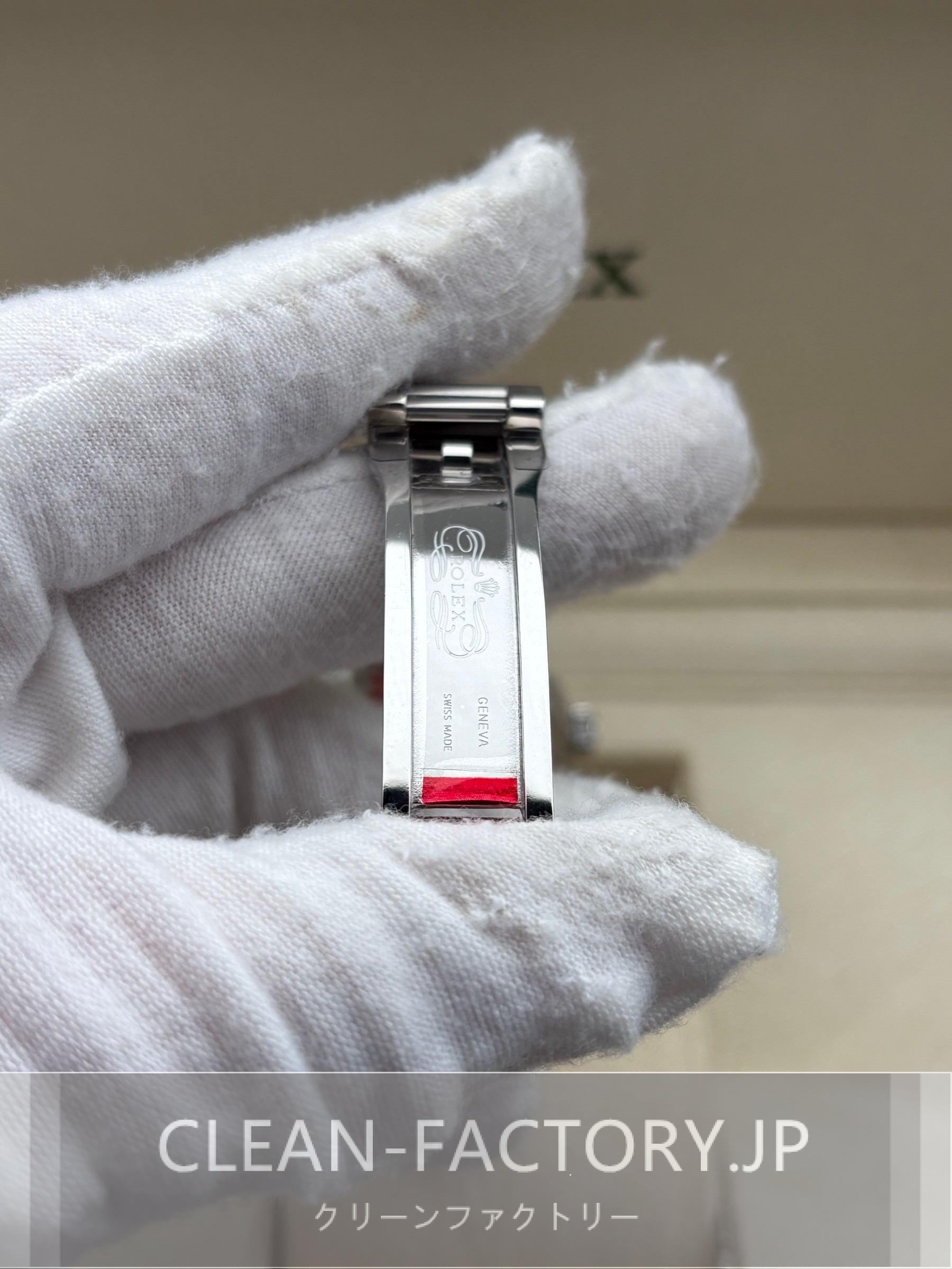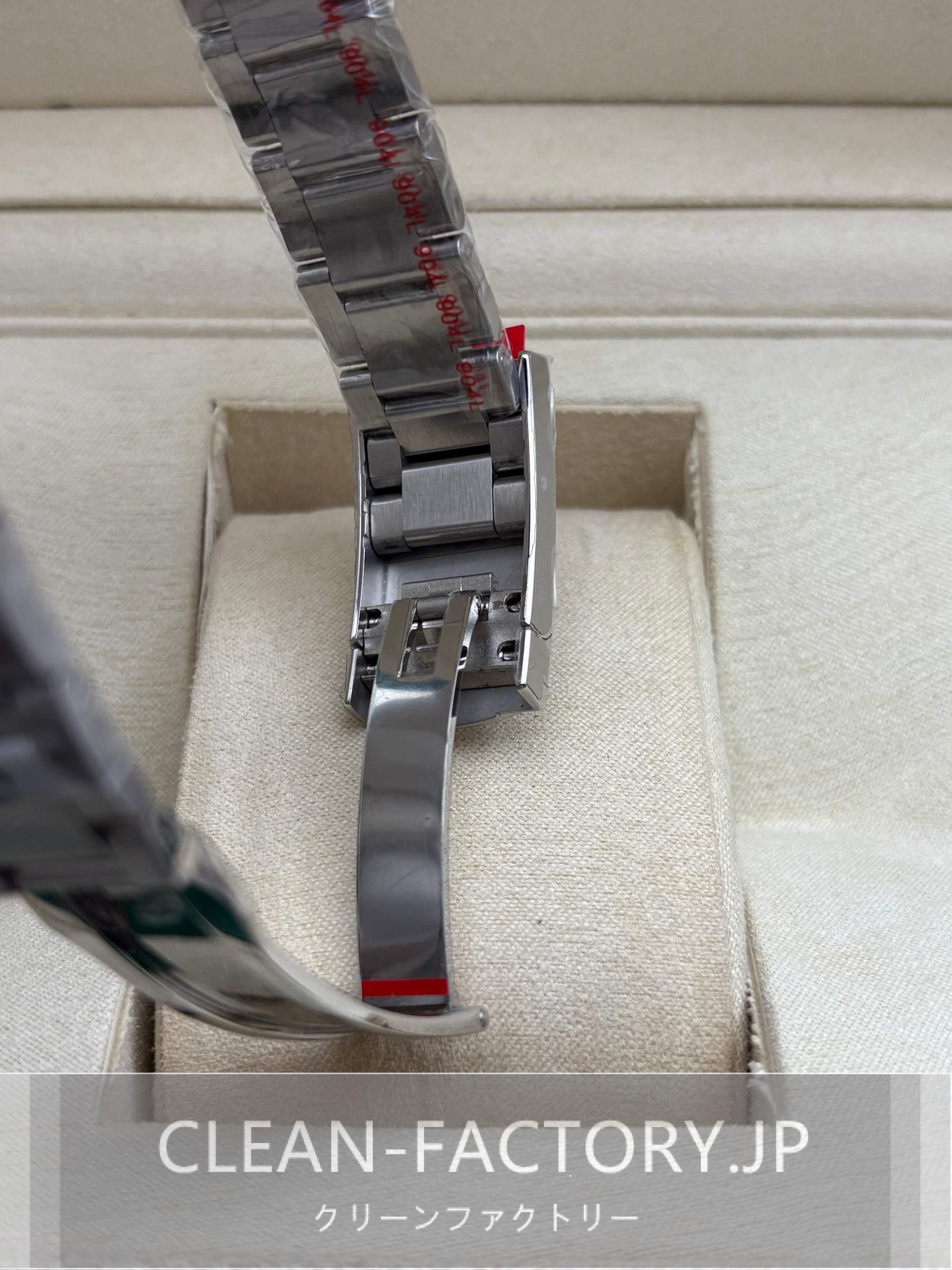 ベルト:クリーンファクトリーは平たい3ピースリンクを象徴とするオイスターデザインベルトを採用しています。904Lグレードのステンレスチールで作り出されており、スクラッチプロティングコーティング加工も施されています。ベルトにはソリッドなネジがあるため、ドライバーを利用したら、簡単にベルト調整できます。ベルトは正規品のように、5ミリコンフォートエクステンションリンク(イージリンクとも言う)を含む折畳式オイスタースクラップを備えています。