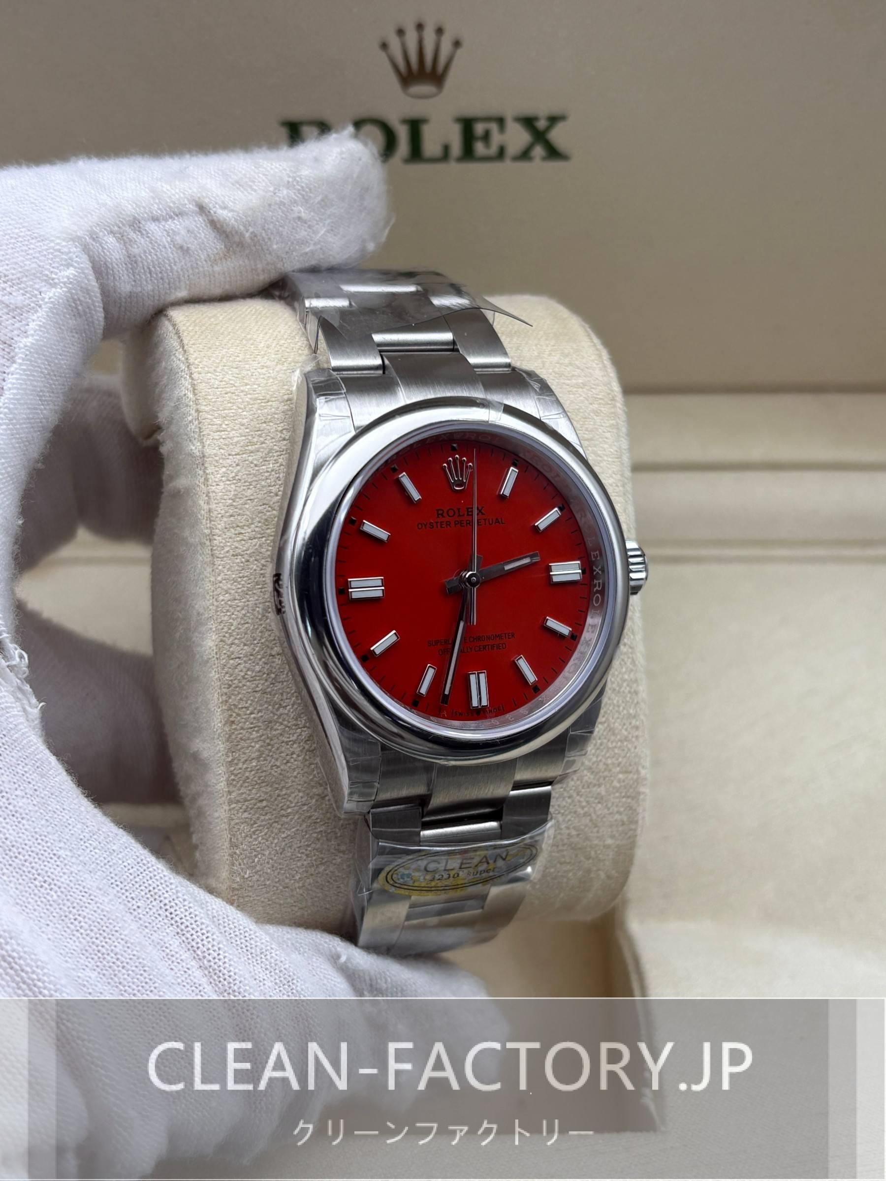 クリーンファクトリー ロレックス オイスターパーペチュアル 126000 36mm レッドダイアル ドームベゼル 904Lステンレス クローンCal.3230ムーブメント