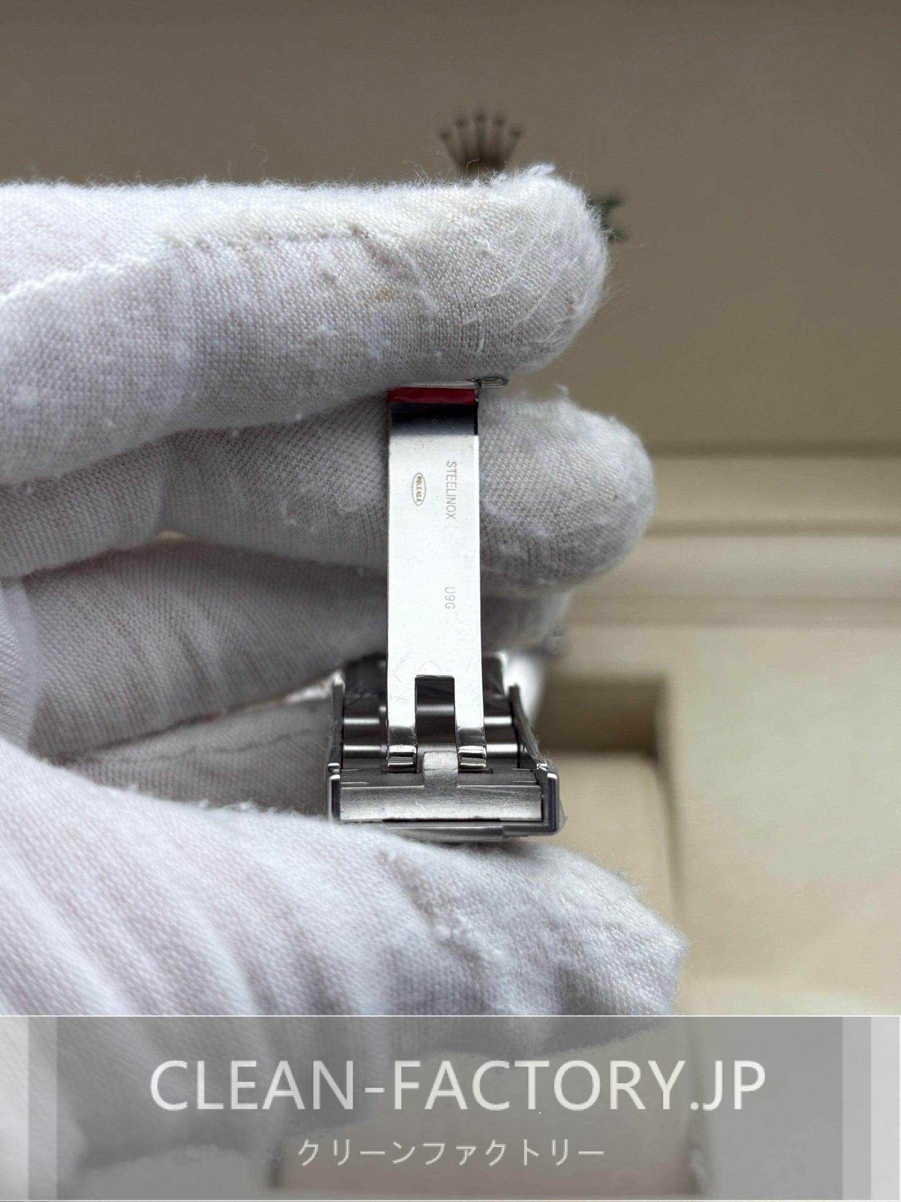 ベルト:クリーンファクトリーはソリッド904Lステンレススチールを採用しています。ベルトが3列平たいリンクのオイスタータイプにデザインされており、ベルトにDLCスクラッチプロティングコーティング加工が施されています。ブレスレットにはしっかりとしたネジが付いており、小さなドライバーを使用してブレスレットのリンクを簡単に取り外すことができます。Easylink 5 mm コンフォート エクステンション リンクを含む折りたたみ式オイスタークラスプが装備されており、正規品と同じです。