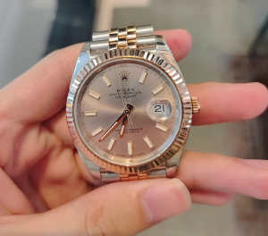 クリーンファクトリーによるロレックスデイトジャスト コンビローズゴールドサンダストダイヤルジュビリー41mm——精密さと職人技の典型