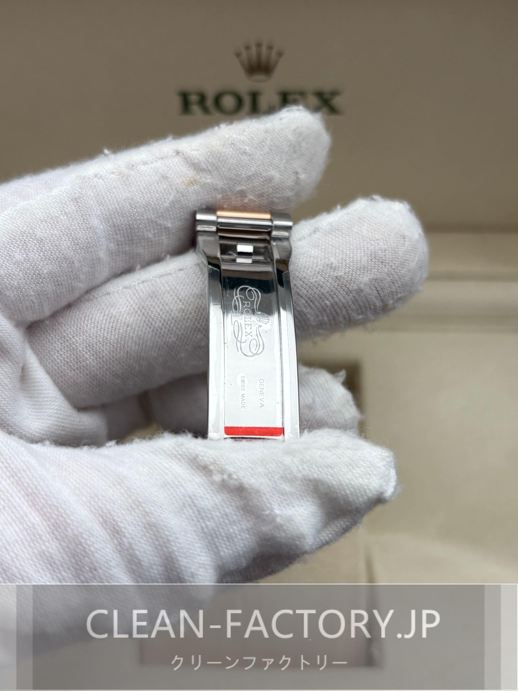 ベルト:オイスターブレスデザインベルトは、904Lグレードステンレススチールで作り出されたツートン平たい3ピースリンクです。DLCスクラッチプロティングコーティングを施されており、ミドルリンクには18Kローズゴールドコーティングを施されております。ソリッドネジにより、簡単なリンク取り外しを確保しており、5ミリコンフォートエクステンションリンク(イージリンクとも言う)を含む折畳式オイスターロック安全スクラップは快適なフィット感を保証しております。