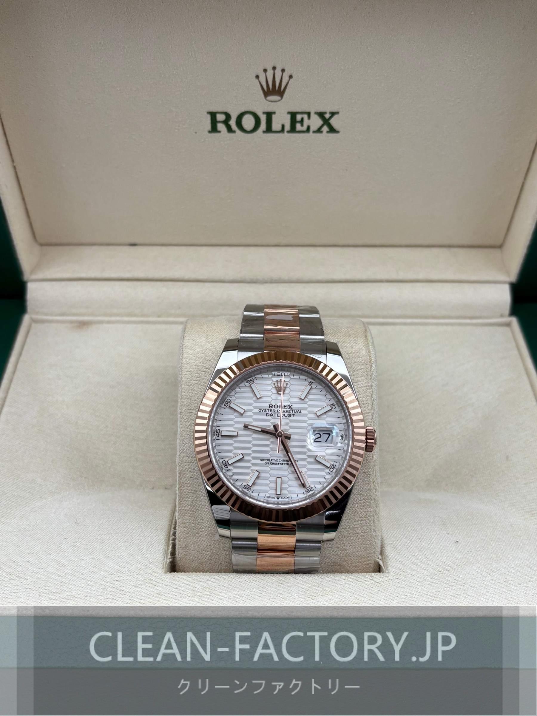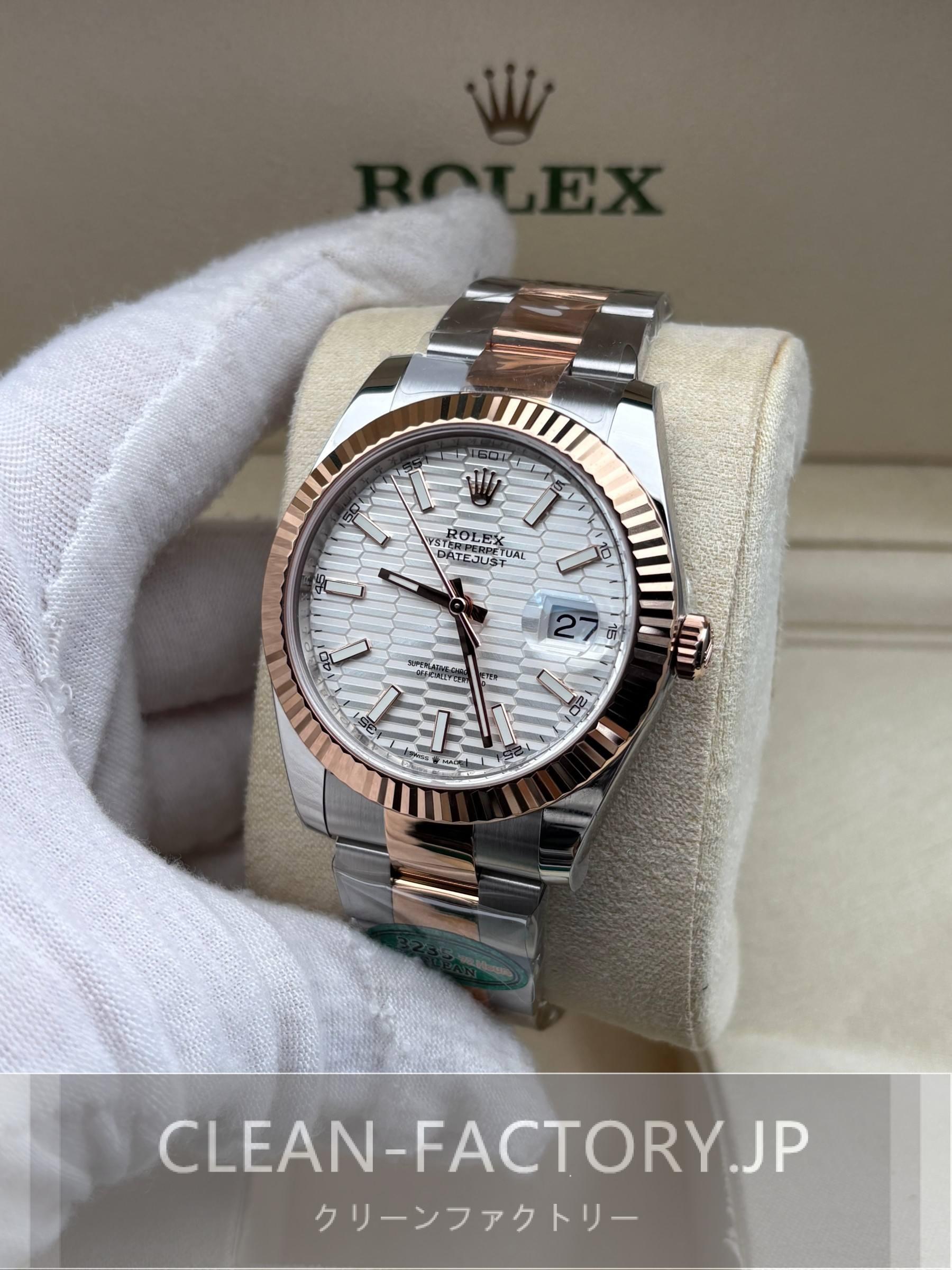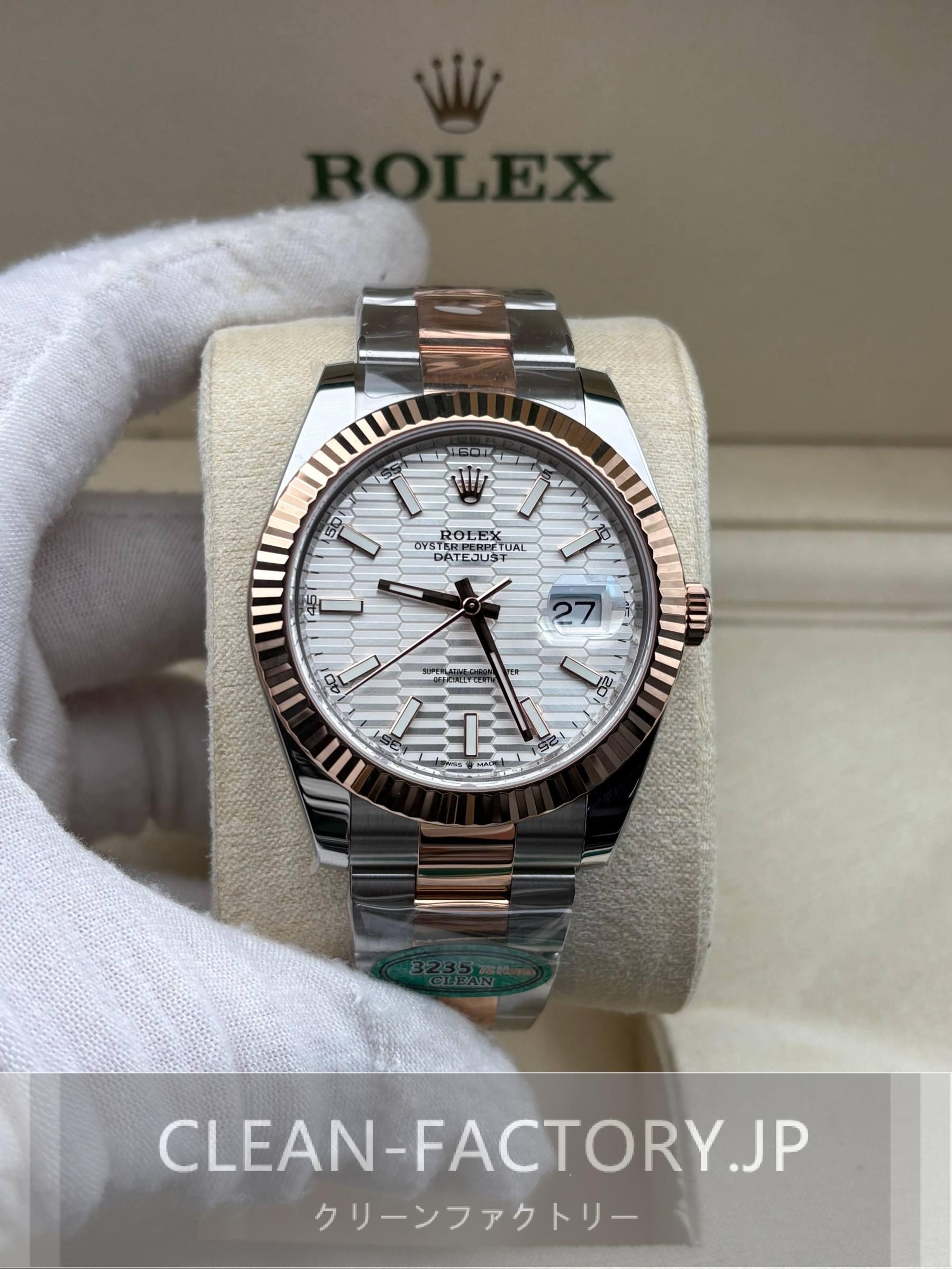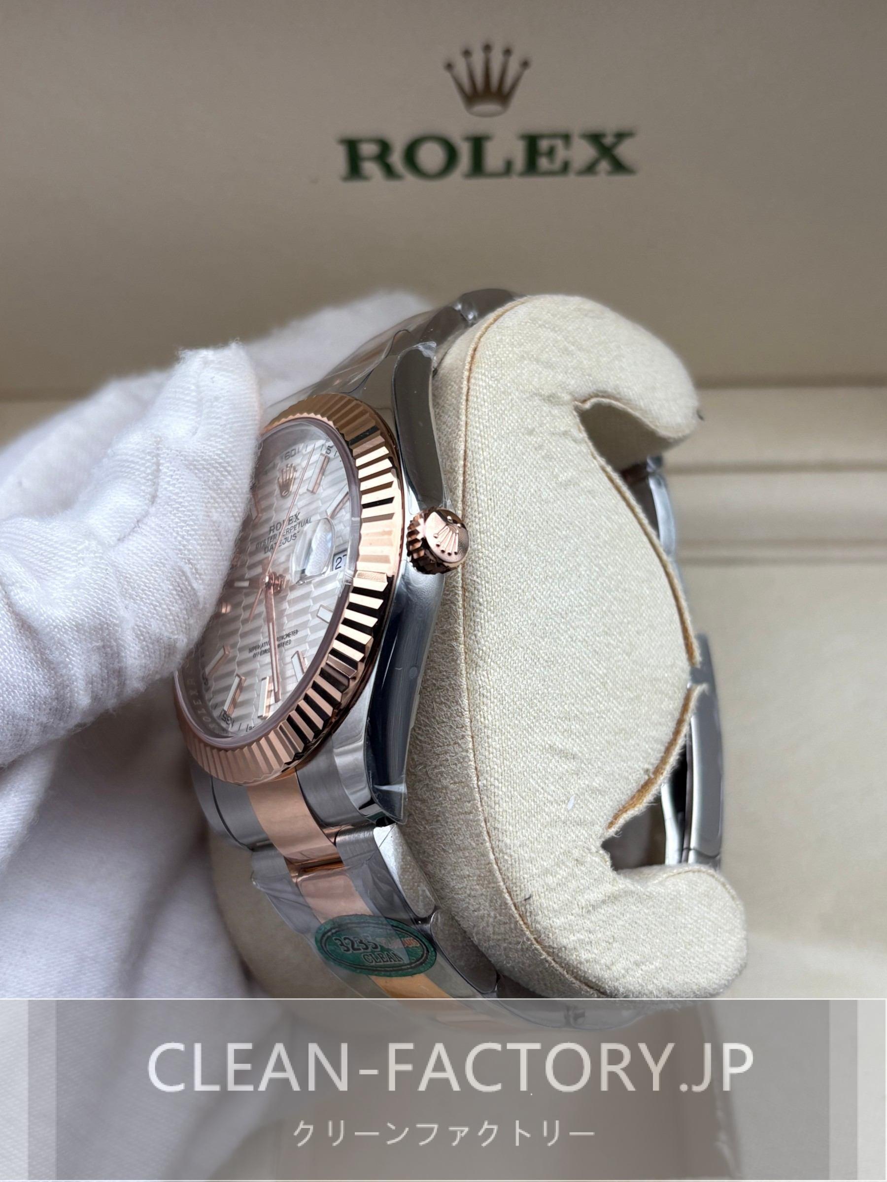 クリーンファクトリーによるロレックスデイトジャスト126331オイスターツートンローズゴールドグレーフルーテッドモチーフ文字盤――精度と職人技の典型