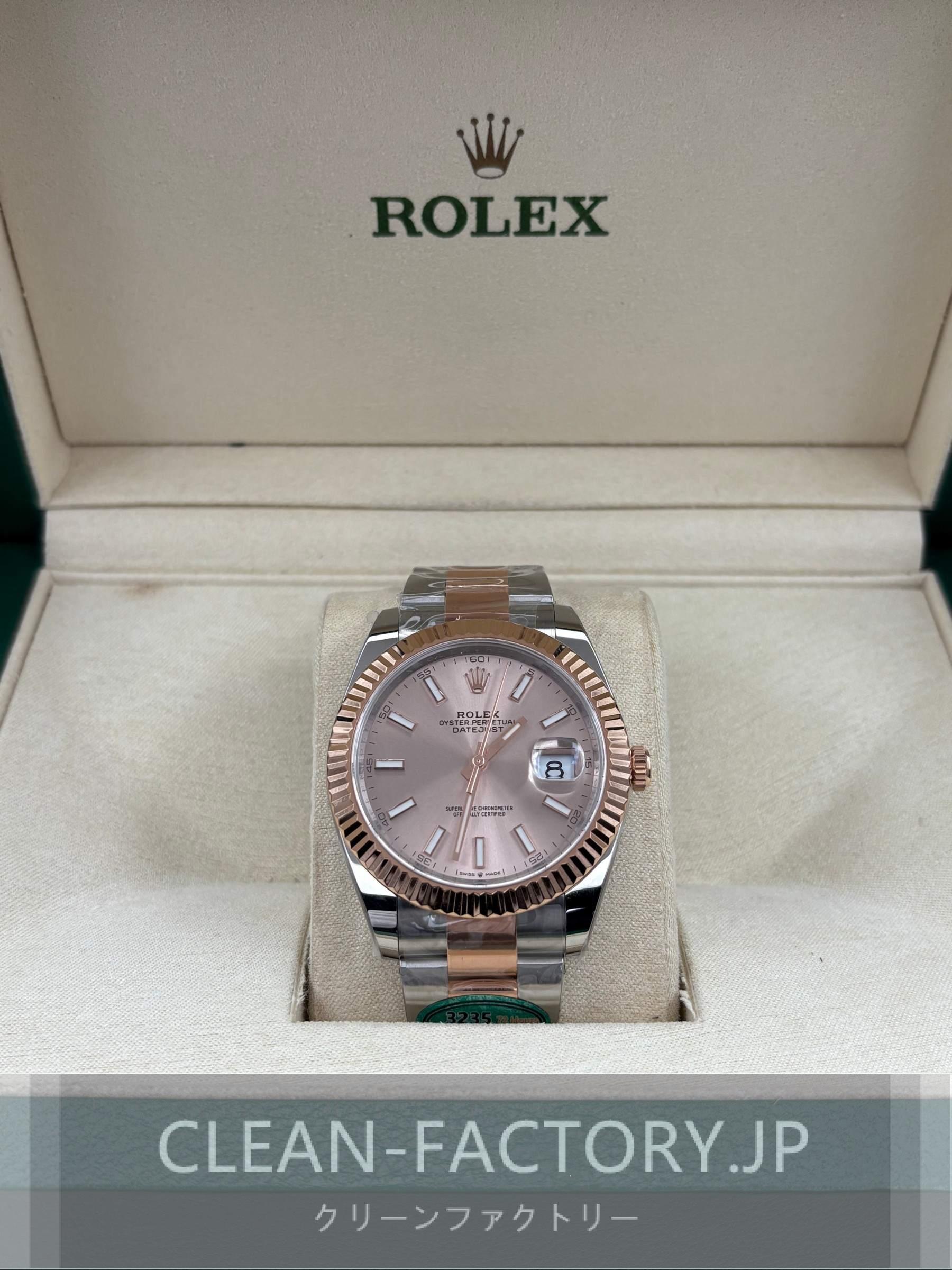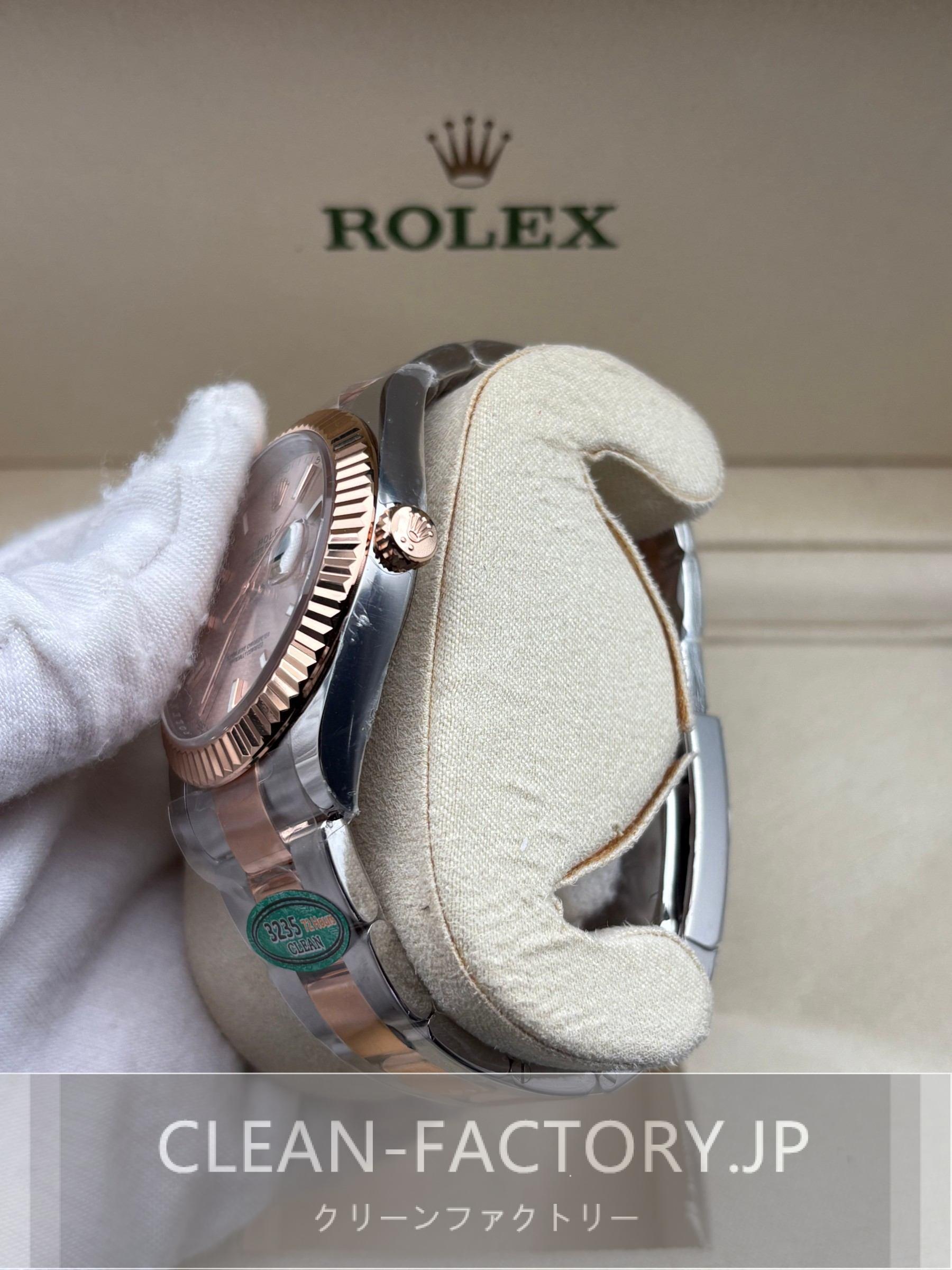 クリーンファクトリーによるロレックスデイトジャスト126331コンビローズゴールドサンダストダイアルオイスター41mm——精密さと職人技の典型