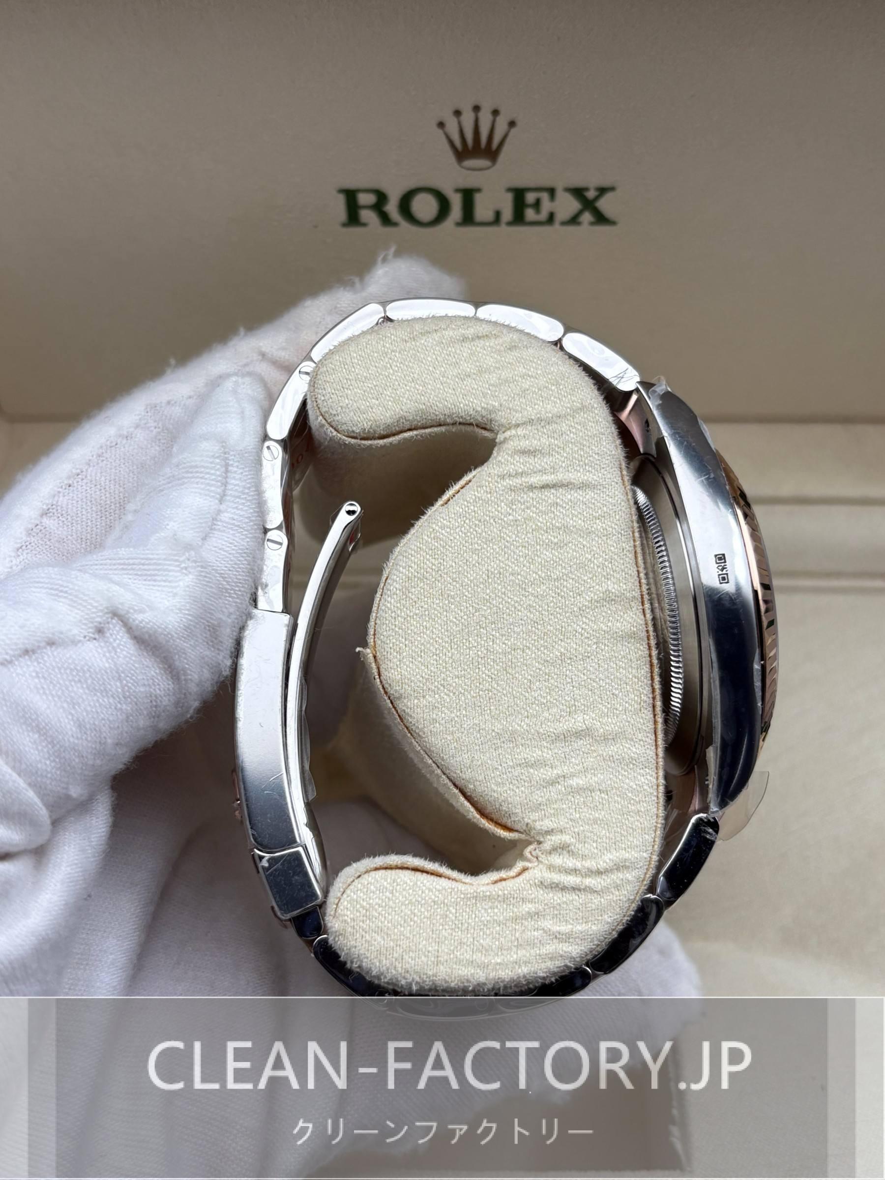 ベルト:オイスターブレスデザインベルトは、904Lグレードステンレススチールで作り出されたツートン平たい3ピースリンクです。DLCスクラッチプロティングコーティングを施されており、ミドルリンクには18Kローズゴールドコーティングを施されております。ソリッドネジにより、簡単なリンク取り外しを確保しており、5ミリコンフォートエクステンションリンク(イージリンクとも言う)を含む折畳式オイスターロック安全スクラップは快適なフィット感を保証しております。