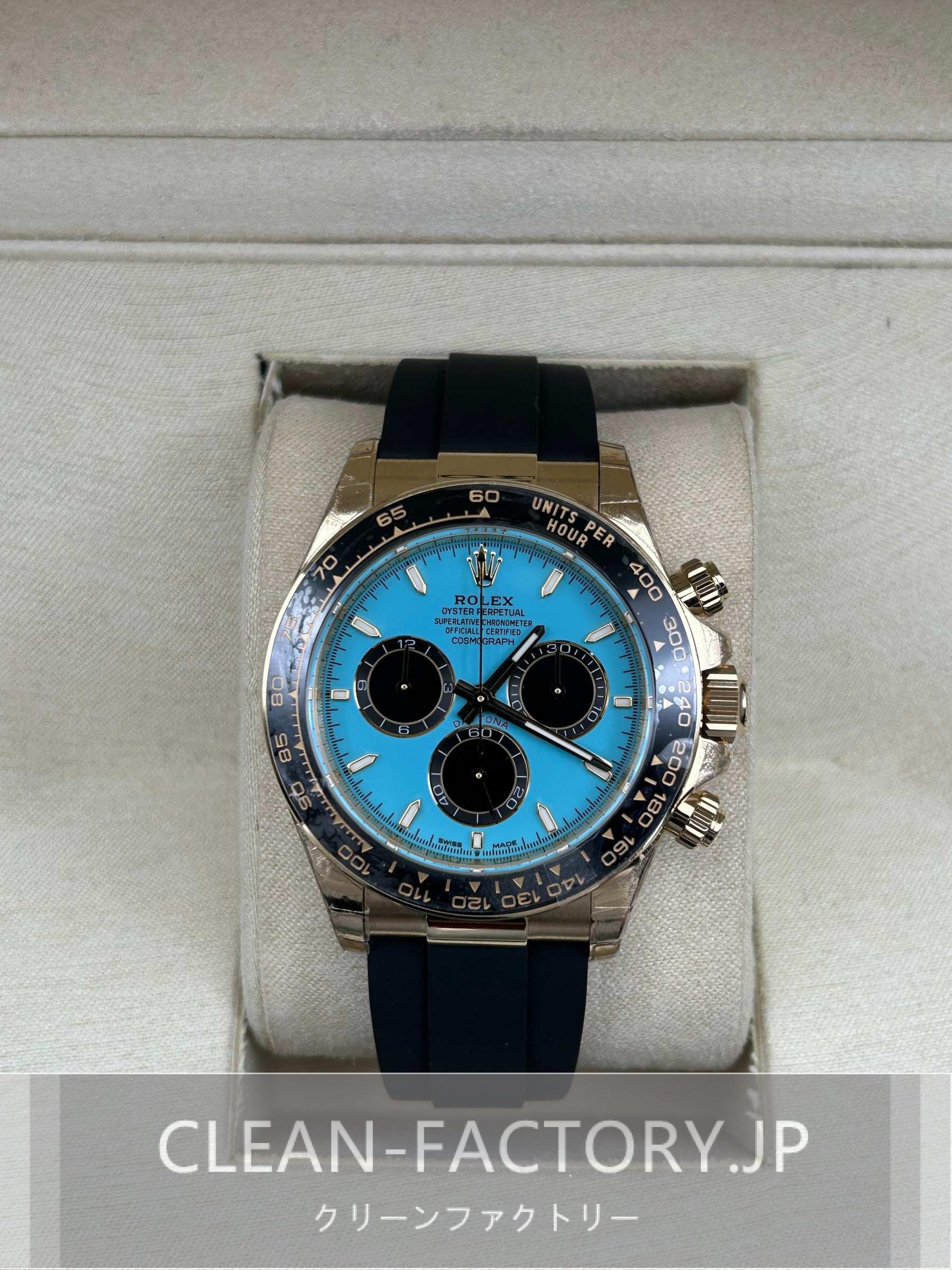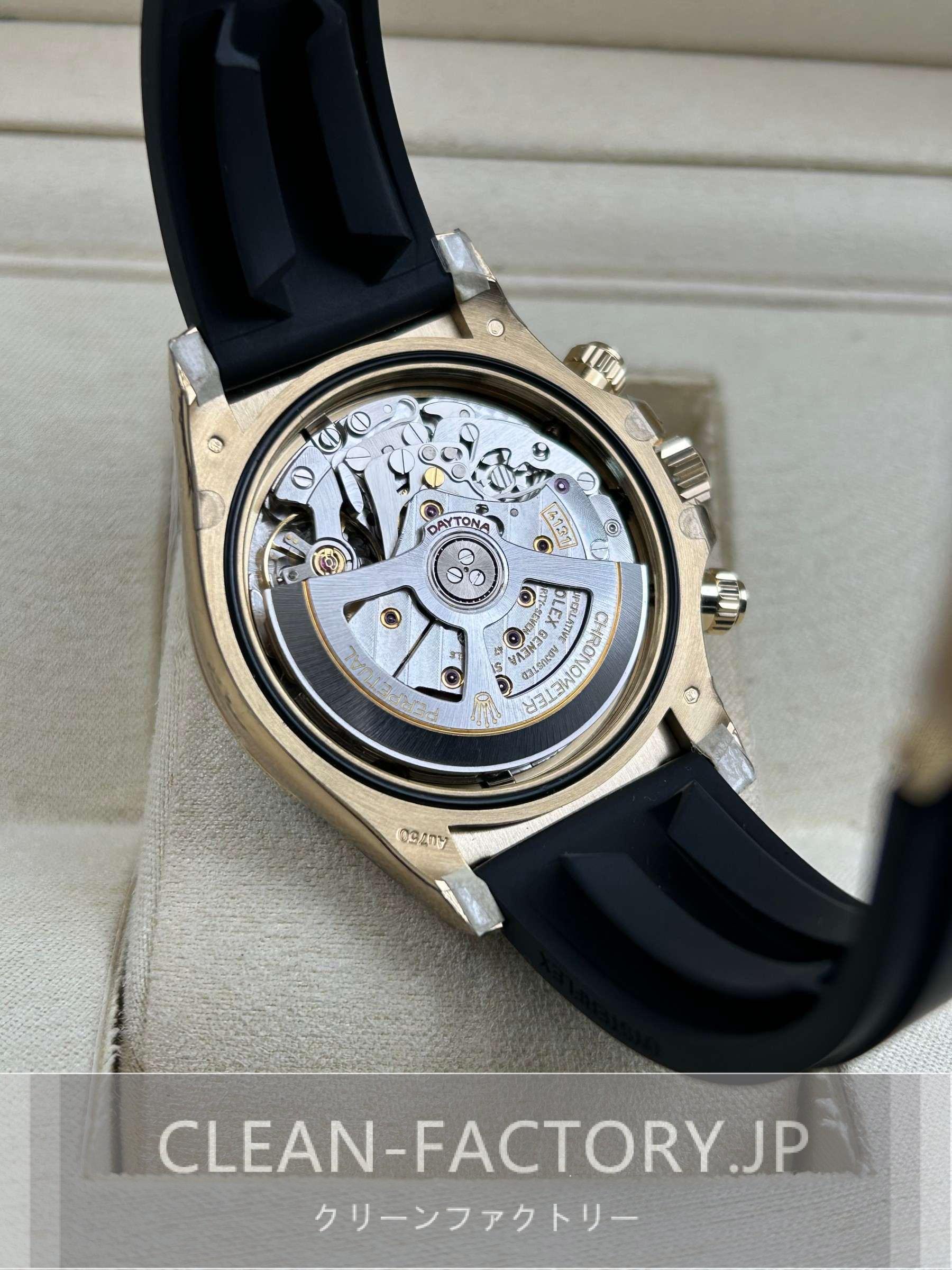 ケース:クリンファクトリーによるこのデイトナは本物18KイエローゴールドPVDコーティング加工された頑丈な904Lステンレススチールによって作りされております。40ミリのケースは完璧に正規品と一致しております。ケースは一体鍛造製法によって作り出されており、滑らかで洗練されたエッジが特徴です。頑丈なねじ込み式リューズはスイス製ラバー・シールと完璧に組み合わされております。RehautにはROLEXROLEXの刻印が刻まれており、あらゆる方面はロレックスデザインを一致しております。