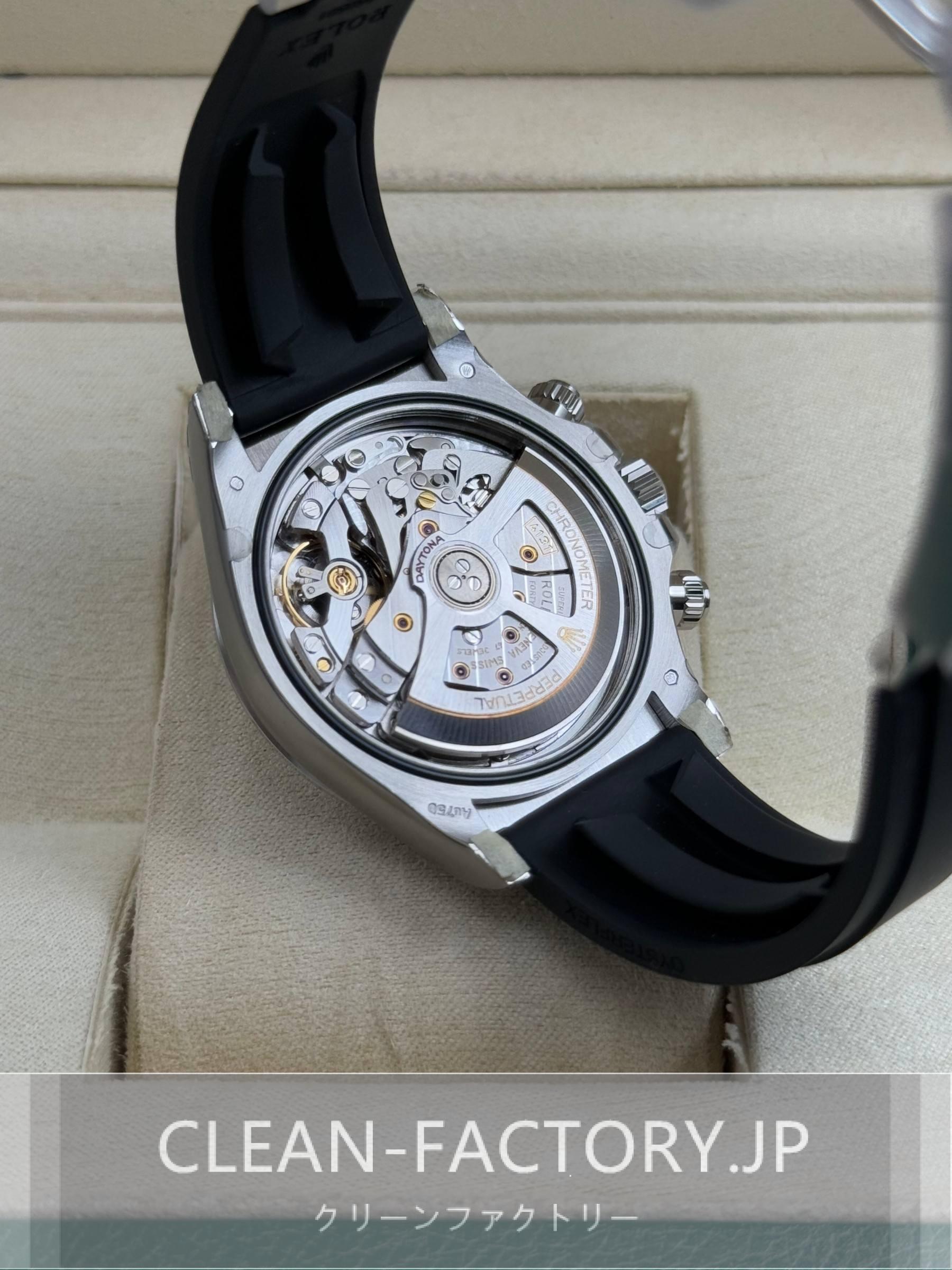 ムーブメント:クリーンファクトリーのエンジニアは4つのロレックス正規品ムーブメントを基づいて、専念に研究して、初の4131クローンムーブメントを作り上げました。精巧な技術と数え切れないほどの投資によって、クリーンファクトリーによる4131ムーブメントの厚さ約11.9MM、ロレックス正規品と一致させており、長期にわたって堅牢性と信頼性を確保しております。注意すべきなのはメインプレートです。ロレックスのバージョン4131ムーブメントのように、象徴的なコート・ド・ジュネーブストライプを見ることができます。このムーブメントは28,800 VPH (4Hz)で作動しており、精度は(-4+6秒/日)に抑えられており、パワーリザーブは約48時間です。センターセコンド針、3時位置の30分積算計、9時位置の12時間積算計を含むクロノグラフ機能は、時計製造における卓越性と革新性に対するクリーンファクトリーのコミットメントを際立たせております。